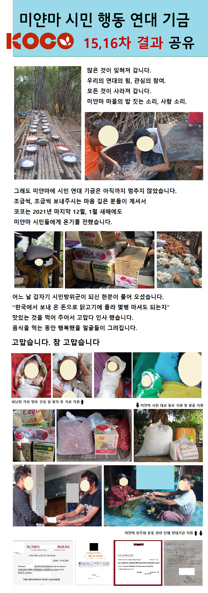 보내주신 연대 기금 덕분에 산속에서 생활하는 시민방위군, 피난주민들에게 특별한 한끼 식사를 대접할 수 있었습니다.