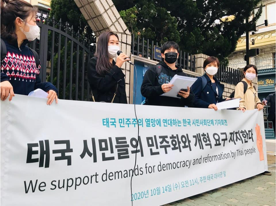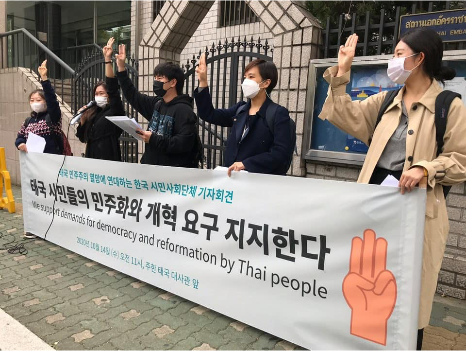 •태국 시민들의 민주주의와 개혁 열망을 지지하고 연대하는 기자회견이 태국대사관 앞에서 10월 14일 열렸습니다.
