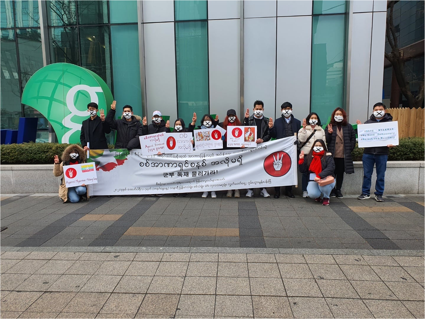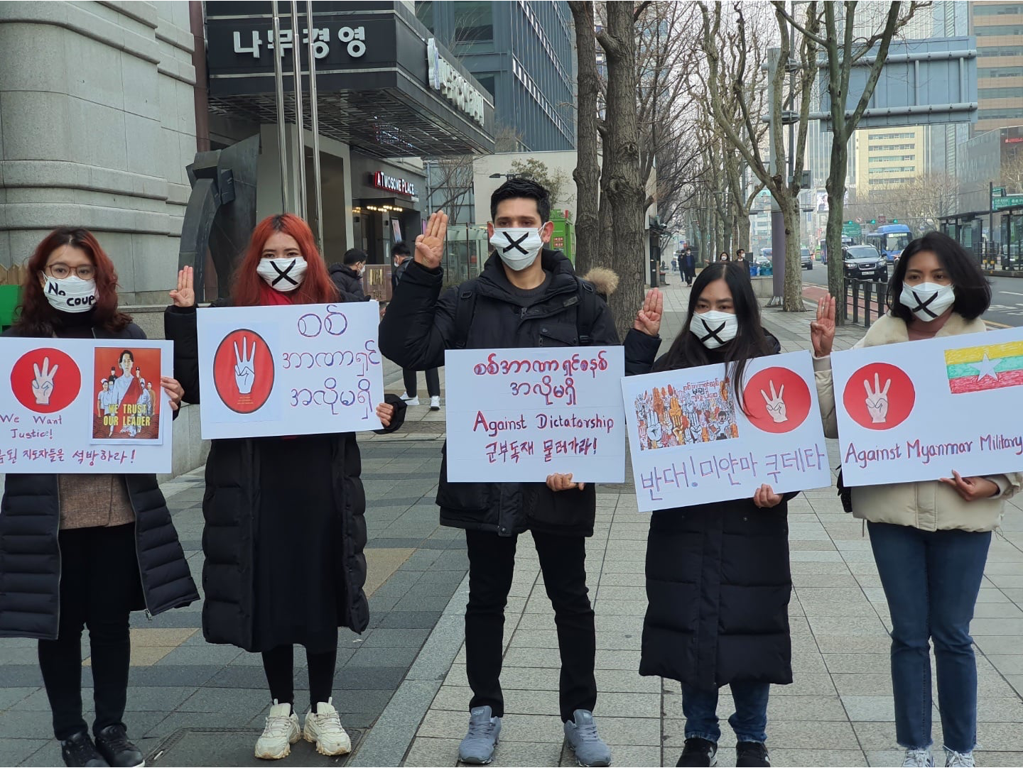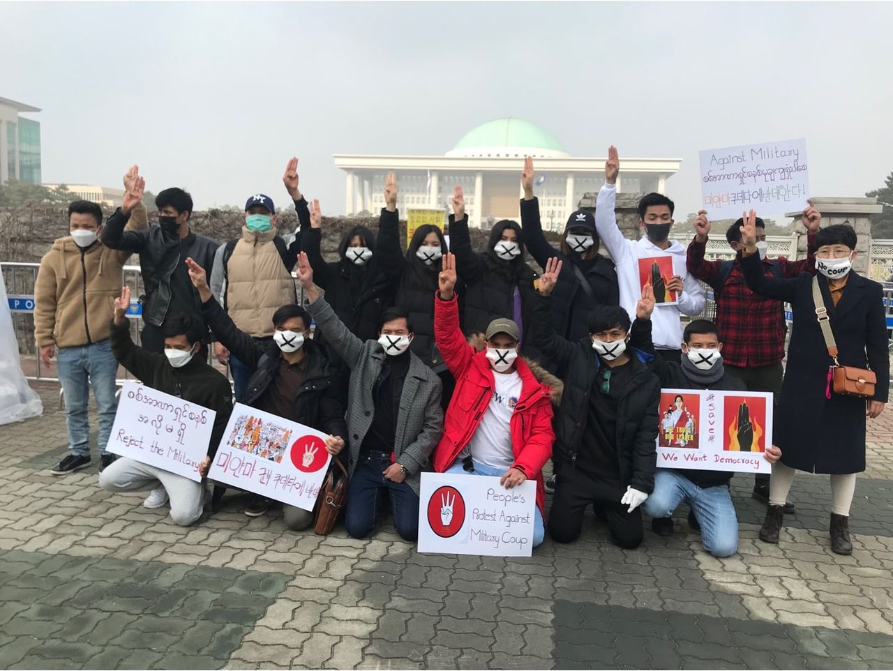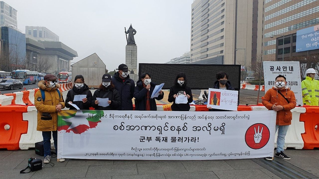 2월7일 5곳에서 열린 미얀마 청년들의 동시 집회,평가회까지 무사히 마쳤습니다. 서울 주요 5곳(미얀마 대사관(한남), 미얀마 영사관(옥수), 국회의사당, 광화문광장, UNHCR 한국사무소(종로))에서 미얀마의 민주주의를 지키고, 군부 쿠데타를 반대하기 위한 소규모 집회 및 기자회견을 동시에 진행하였습니다. 앞으로 매주 수,일 릴레이 시위가 이어집니다. 계속 소식을 공유하겠습니다.