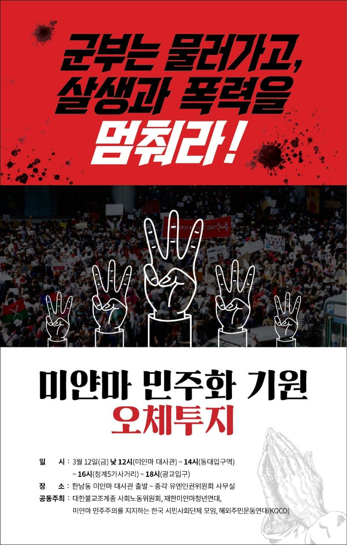 군부는 물러가고 살생과 폭력을 멈춰라!