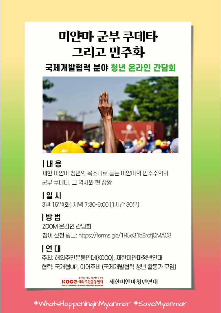 [연대해요] 미얀마 군부 쿠데타 그리고 민주화 - 국제개발협력 분야 청년 온라인 간담회